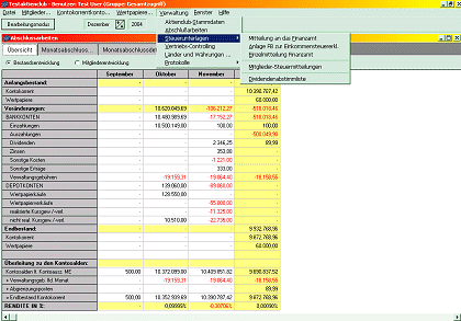 eigentlichen Verwaltung und der Weiterberechnung des jeweiligen Bestandes, der Monatsberechnung und